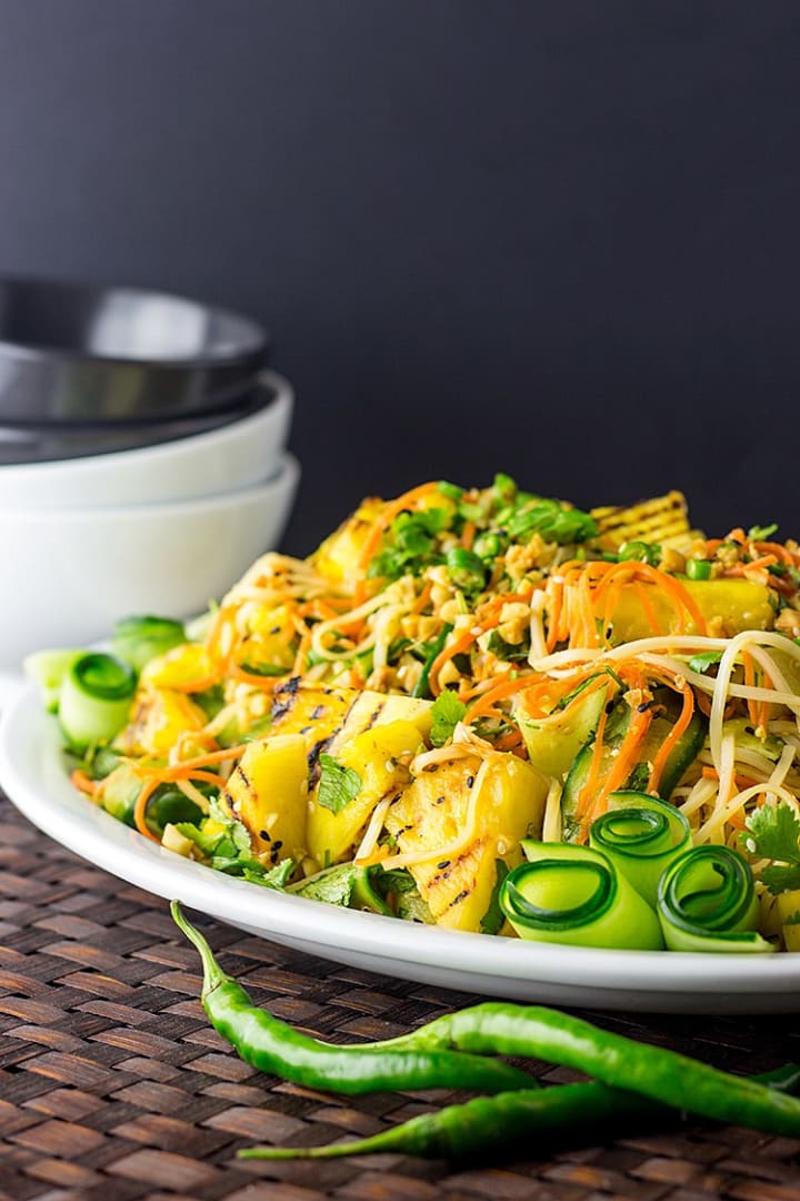 It’s getting downright chilly outside. If you can’t book tickets to Bali right now, transport yourself to tropical paradise with this Thai Rice Noodle Salad with Grilled Pineapple from Quite Good Food (uh, yeah, or like, really super amazing food...talk about an understatement!). For the noodles, you can use either the thin Thai rice stick noodles pictured or go with the wider pad thai style ones - or even vermicelli. While the carrots and cucumber used here look yummy, you can use whatever you’ve got on hand, even adding bean sprouts or sugar snap peas. Grilled pineapple is NOT optional. If you think you don't like pineapple, grill it and be astonished by the passionate love. You'll be overcome, I promise. The flavorful stuff is what’s really got me drooling: cilantro, mint, peanuts, green chili, sesame seeds, and a tangy lime dressing (with ginger, my favorite Asian flavor of all). WHY am I not eating this right now? Oh, that’s right, I’m still telling you about it. You’re welcome.