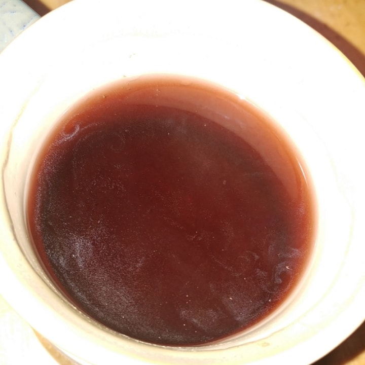 After I woke up this morning I boiled the water. I prepared my cup and placed the loose-leaf tea in a filter that I have specifically for making those types of teas. I poured the hot water over the tea and let it soak for about five minutes.