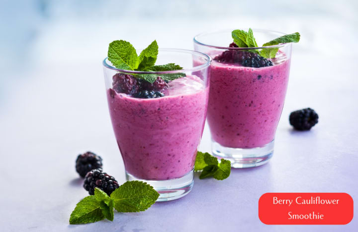 Start your day with the perfect breakfast smoothie. This Berry Cauliflower Smoothie is bursting with antioxidant-rich berries and nutrient-packed cauliflower. It's the ideal way to start your day with a blast of vitamins and minerals, plus it's sweet and delicious. To make this perfect smoothie, you only need some blueberries, cauliflower rice, vanilla tone, almond milk, peanut butter, and chia seeds.