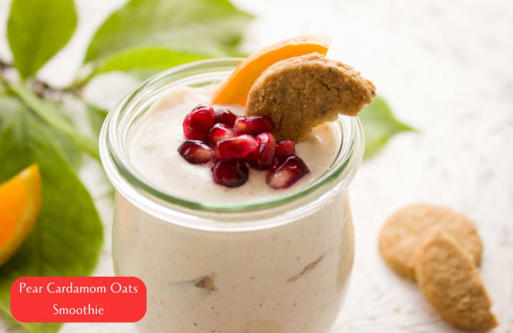 For a pear-filled boost of energy, try this Pear Cardamom Oats Smoothie. It's a delicious combination of pear, cardamom, oats, ice, and honey. It's the perfect way to get your day off to a great start. Not only is it packed with vitamins and minerals, but the oats, pear, and honey provide an extra layer of sustenance to help keep you feeling full for longer.