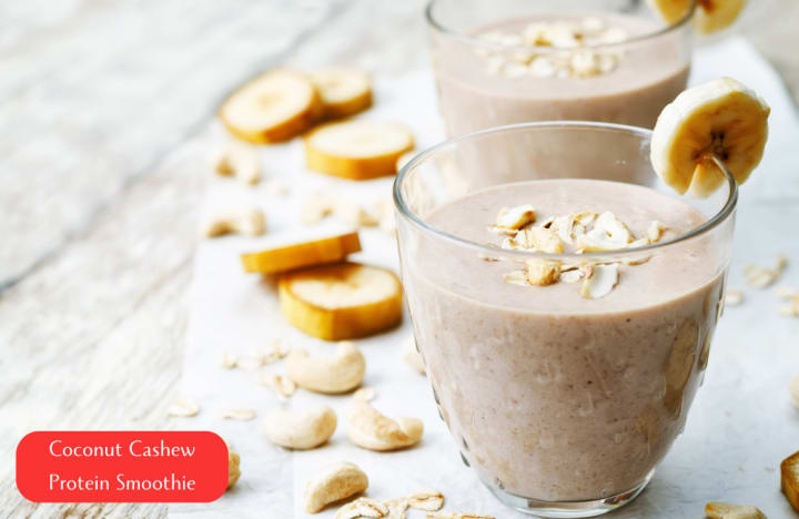 For a protein boost, try the Coconut Cashew Protein Smoothie. Coconut milk and cashews boost healthy fats and proteins, while bananas and protein provide sweetness and texture. This smoothie is perfect for an energizing morning or as an after-workout snack.