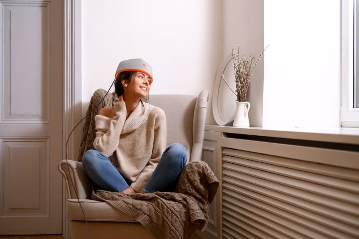 The red light therapy cap was a device that fit over my head and delivered low-level red and near-infrared light to my scalp and hair follicles. The light was supposed to increase blood circulation, cellular metabolism, collagen production, and tissue repair in the scalp and hair follicles.