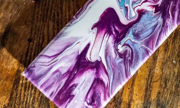 Pour some paint: You can get some paint at Walmart for 50 cents and thin it with some water like Rinske Douna shows us in this video. When I started, I was nervous about ruining canvases, so I used poster boards taped to cardboard until I felt confident enough to use canvas panels, and worked my way to stretched canvases.