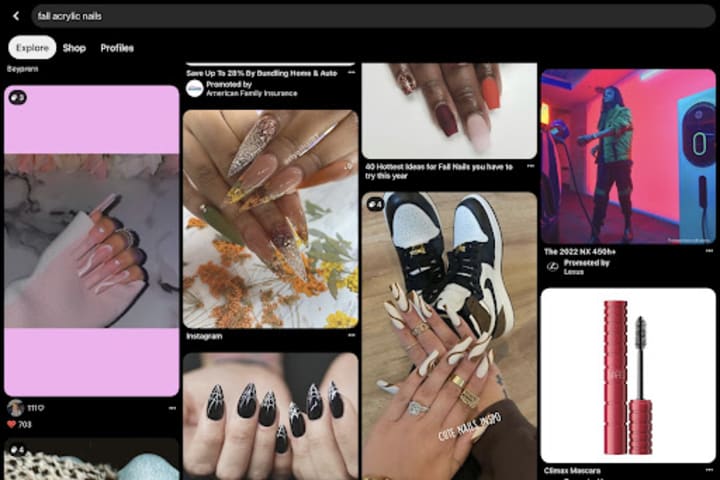For example, let’s say you’re looking for nail inspiration before you go to the salon. Searching the keyword “fall acrylic nails” on Pinterest gives you tons of relevant images on the topic.