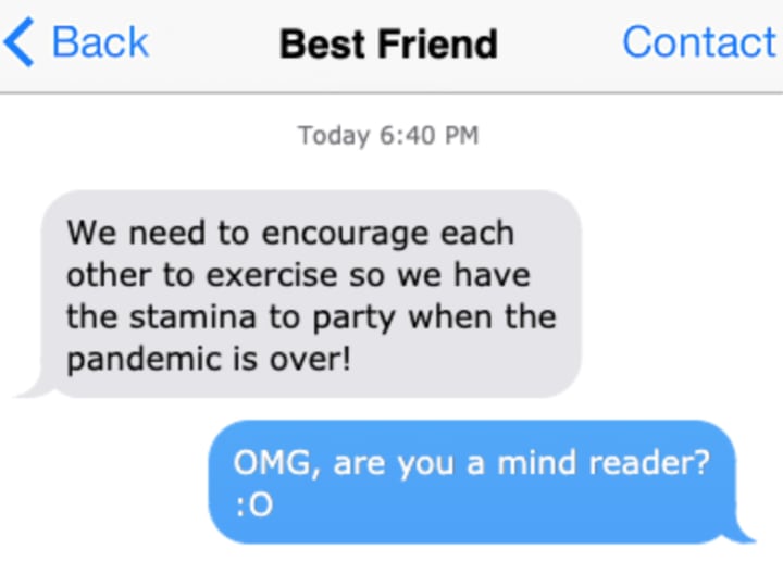 While I’m engrossed in colourful and impressive workouts and dance routines, as if by divine telepathy, I get a message from my best friend.