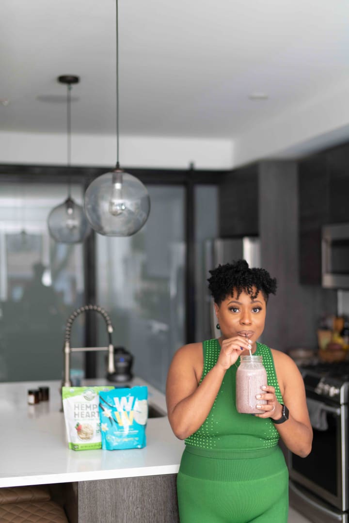 I also try to find alternatives to things I love that traditionally would have high Points values. I use sugar-free coffee creamer, unsweetened almond milk or water in my smoothies, and reach for sparkling water instead of sodas. I also use zero calorie sweeteners to add in my coffee and smoothies as well, like monk fruit.