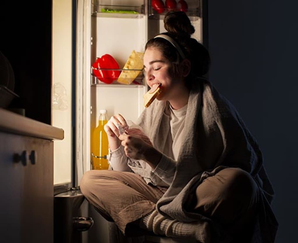 Nighttime eating has been associated with excess calorie intake, obesity, and poor health.
