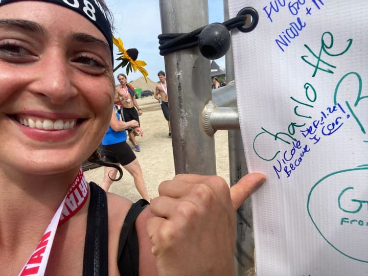 I am so FCKING proud of myself for completing this. And at the same time, humbled, to say the least. It was a 5k with 20 obstacles. Some I found more difficult than others but none were easy. And I am so proud of Mike who could’ve gone faster of course but enjoyed doing it together. We had a blast, and Mike even picked me that flower you see!