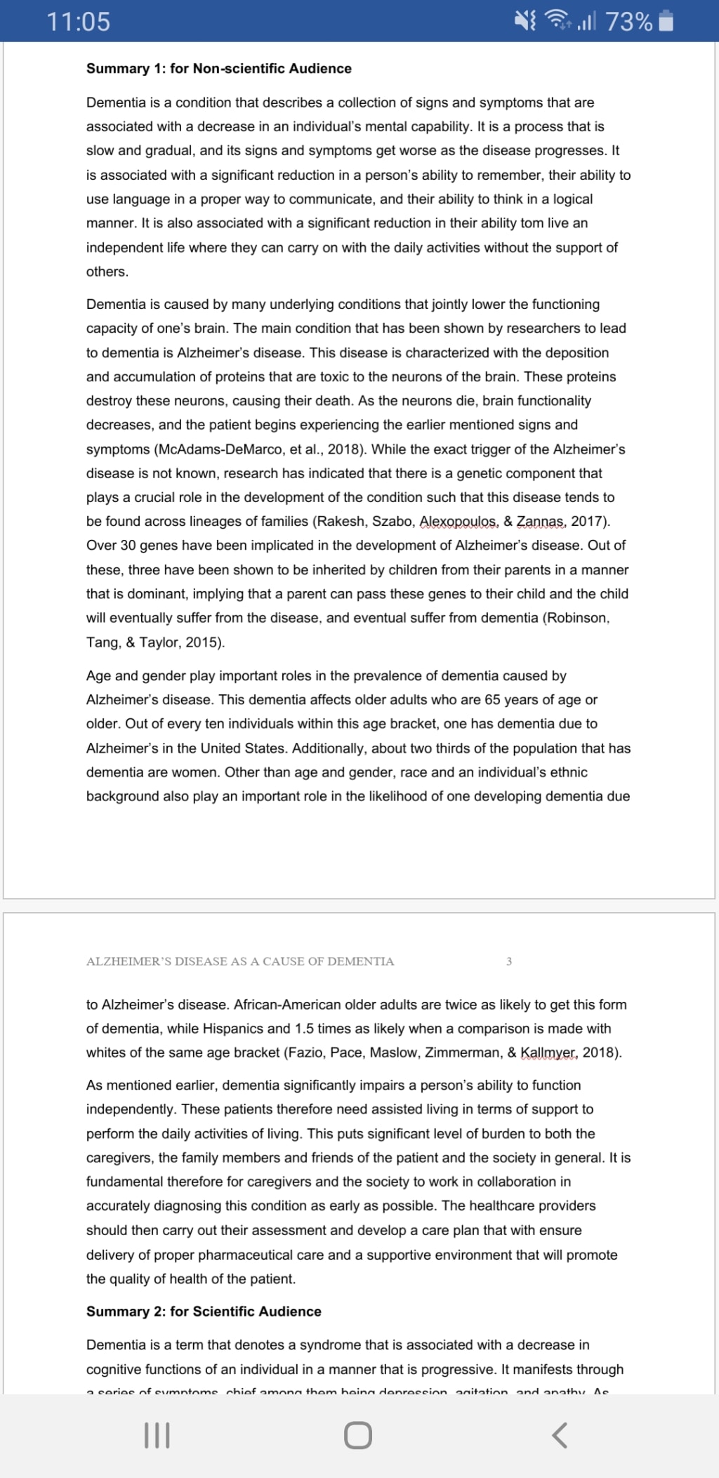 • Rakesh, G., Szabo, S. T., Alexopoulos, G. S., & Zannas, a. A. (2017). Strategies for dementia prevention: latest evidence and implications. Therapeutic Advances in Chronic Disease, 8(8-9), 121 –136. doi:https://journals.sagepub.com/doi/10.1177/2040622317712442