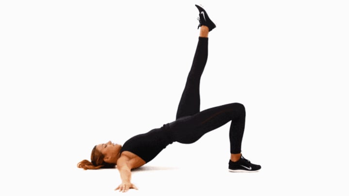 Drive through your heel to lift your hips — shoulders to hips to knees in a straight line