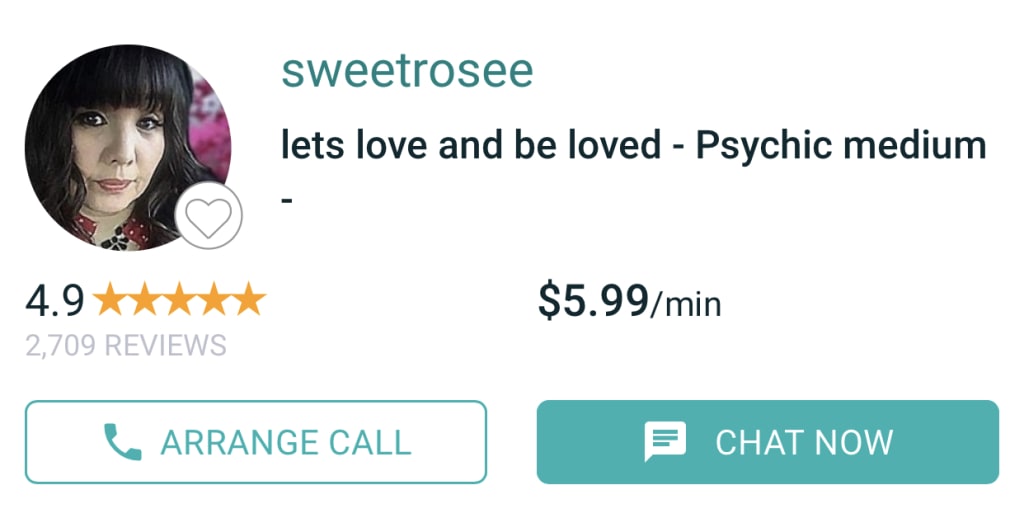 I spoke to SweetRosee and she was scary good. At least for me anyway. She's a medium and a psychic and like her name, is super sweet. I'd had the feeling someone had been trying to get a message to me and by chance found her on keen. The first thing she said after hello she was instantly asking if I have a cat and told me someone with her was telling her I'm a "cat lady"! (this is true lol I have 2 kitties and I love cats.) It took her a moment to figure out who was talking to her, she knew it was a male and then started describing him and I knew it was my grandfather. She started describing specifics about my grandfather and describing things I'd been seeing lately (i didnt even tell her about them, she brought them up.) and told me they were signs from him trying to get my attention. She picked up that he drove a big red truck and liked to hunt and the woods, knew of his back problems and that he had big feet (he really did too. We had to buy his shoes at a speciality store!) and a bunch of other things specifically about him.And crazy enough, she picked up on my ex as well. (She sort of bounces between what the spirits are telling her, what she's picking up at that time, what she's seeing coming, etc.)