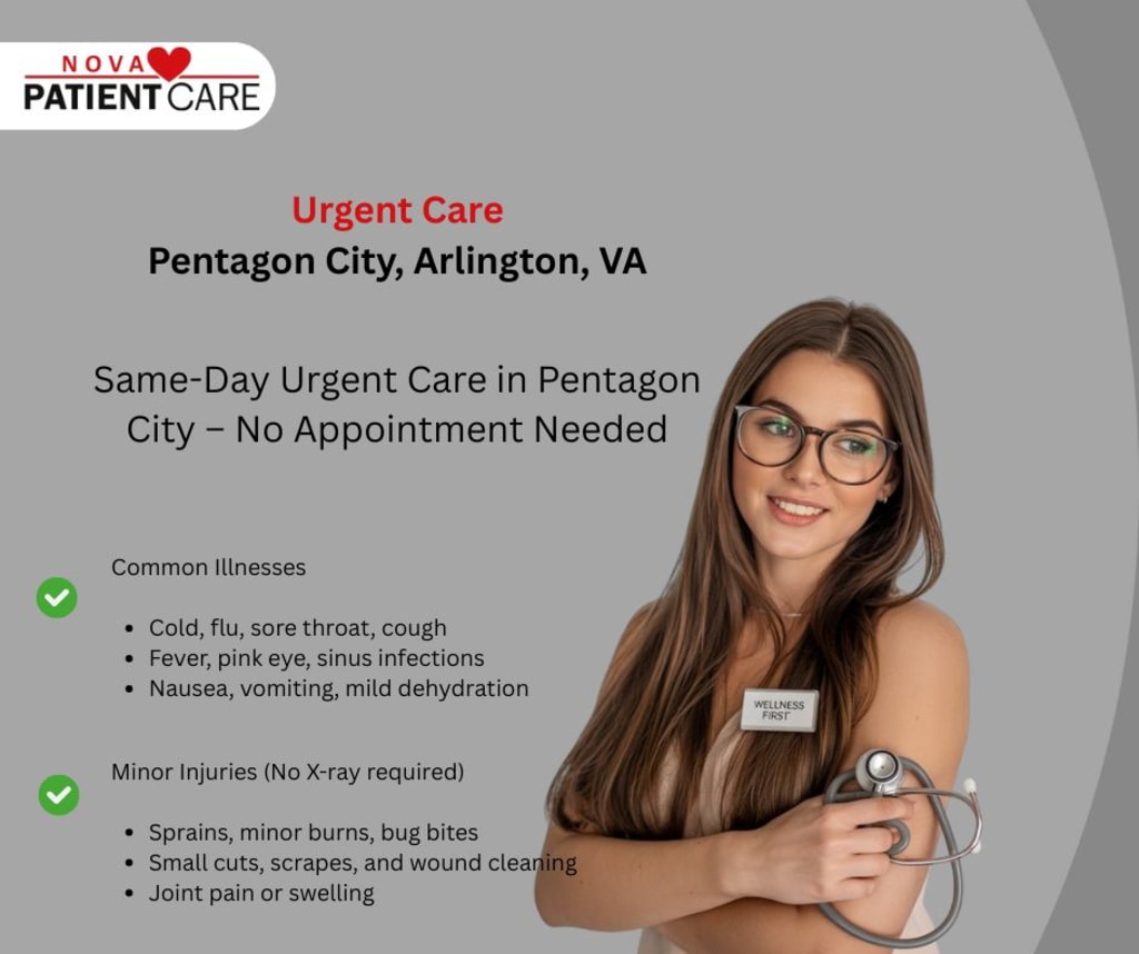 When unexpected health issues arise, finding fast and dependable medical care is essential especially in a busy, urban community like Pentagon City, Arlington, VA. Whether you're dealing with a minor injury, sudden illness, or symptoms that can’t wait for a primary care appointment, Nova Patient Care urgent care clinic in Pentagon City is here to help.