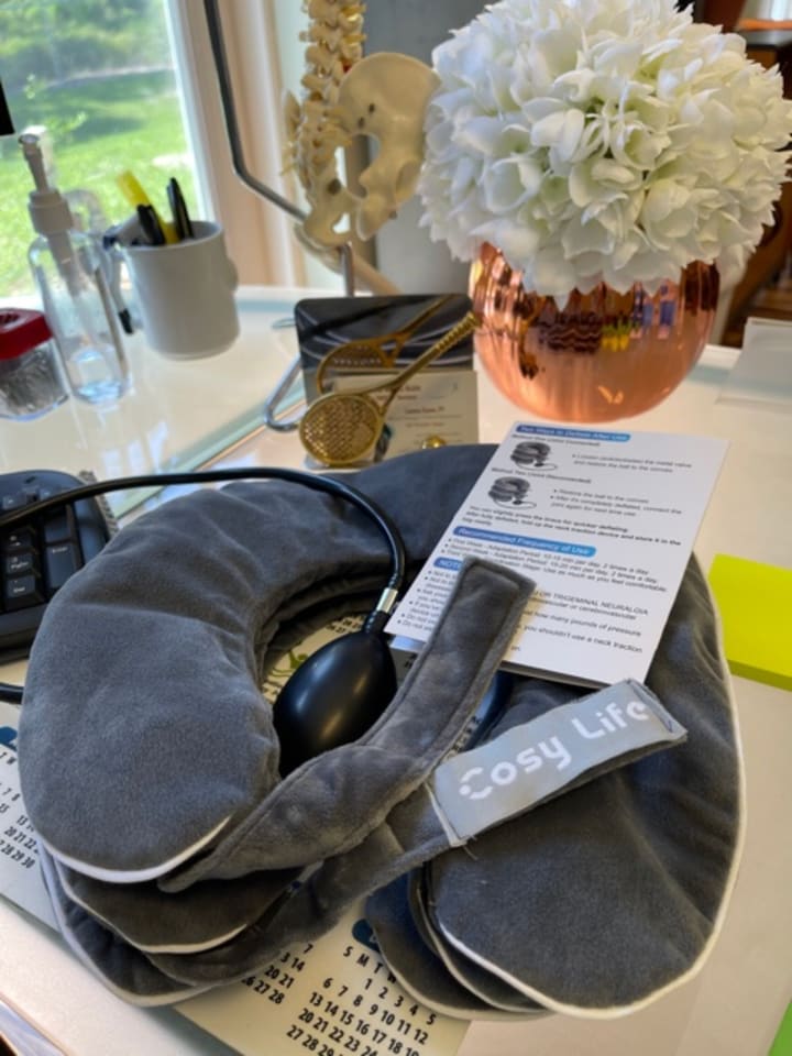 Having patients and friends ask me about neck pain and headaches led me to find out about this neat little neck traction device: the inflatable neck traction device.
