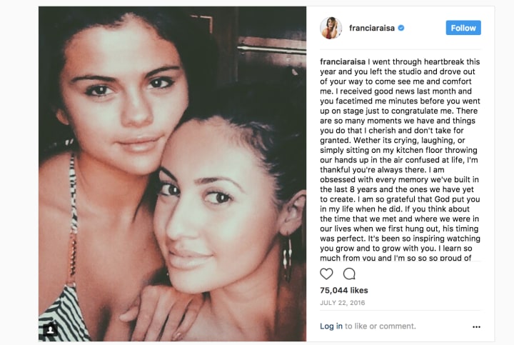 In 2012, Raisa called Gomez her sister in a 2012 interview with Wetpaint.