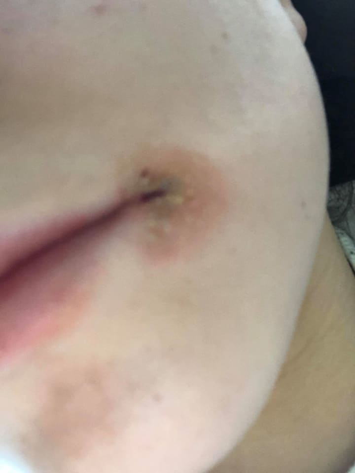 None of the doctors believed us. We spent money on the allergist for patch testing, just for them to say I wasn't allergic to anything, but I was having contact dermatitis, and that it wasn't possible to be allergic to titanium, nor my screw. For, titanium allergy is so rare that it can't even be tested for in the US. So, we taped a titanium screw to my arm, and within a few days, I was having reactions.