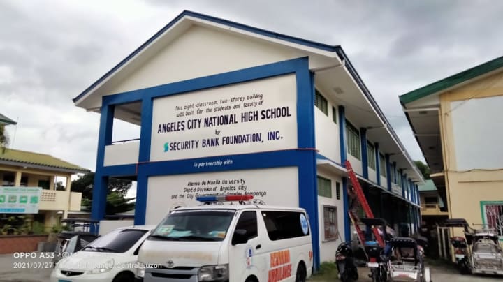 As part of the pandemic solution, I'm eager to get vaccinated. I received my first dose of COVID-19 vaccine on July 27, 2021. In the Angeles City National High School, I was vaccinated by the Local Government Unit (LGU) of Angeles City, Pampanga, Philippines (ACNHS). The vaccine is made by SINOVAC. At around 2 p.m., we arrived at the vaccination area in Angeles City National High School from our workplace at PNR Angeles Station, McArthur Highway, Angeles City, Brgy Pulungbulo, Pampanga, Philippines.