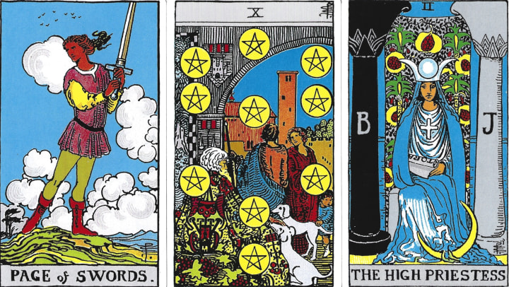 10’s are about completion and endings and as we know endings pave the way for a new beginning. Pentacles are all about work and finances. So this card is a card about legacy. About what we leave behind that paves the way for a new future. Ultimately it’s a happy card Everyone in the card is happy, there are puppies! Who doesn’t love puppies! This card asks us to think about our actions and how they create our future. Do we want to have a legacy of arrogance and overconfidence? coupled with the previous card, I think this is telling us to be mindful of today and our actions. What we do today will set us up for the week. And we want to make sure that we have a smooth week. I feel there is a warning in these two cards.