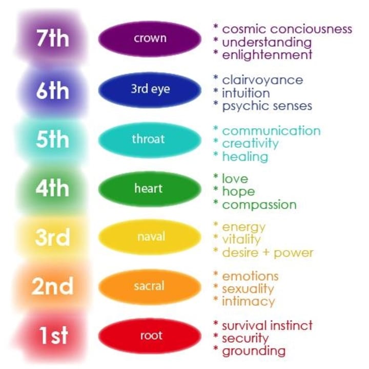All of our senses, perceptions, and different states of awareness can be divided into seven categories, and each of those categories are connected or associated with a specific chakra.