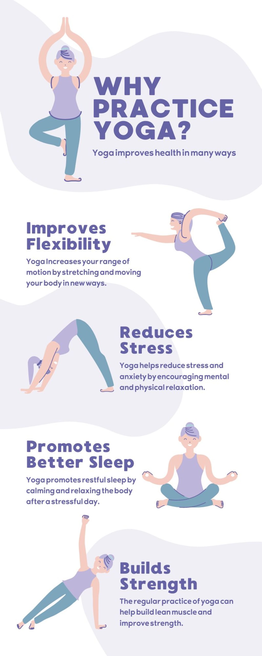 Yoga postures, or asanas, are designed to increase flexibility and range of motion in the body. As individuals practice yoga regularly, they will find that their flexibility and overall mobility increase.