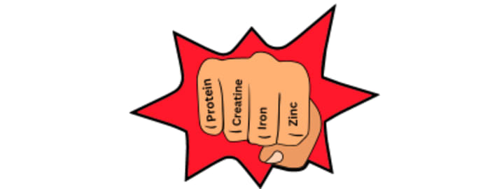 Good ol’ Red Meat comes out swinging! Hitting B vitamin supplements with a flurry of protein shots, iron jabs, and an overhand creatine cross. A near 1st round KO for big beef!