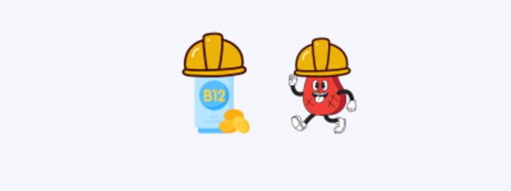 In the blue corner, we have B12 Supplement, often in the form of a pill. This fighter is super easy to absorb because it doesn’t need a coach or a training session. It’s already in the right form to be absorbed by your body. This is especially good for people who need high doses of B12 or have problems with absorbing nutrients. It’s like B12 Supplement has a secret power that helps it win the fight easily, no matter what.