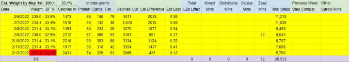 Still, that's 3.6 pounds just by making sure I keep myself in a deep caloric deficit. And yes, I still eat a lot of the same stuff I have in the past. I'm not on some special fad diet plan or filling myself with keto or paleo-friendly foods. Most of this loss is while eating processed meals and sugars.