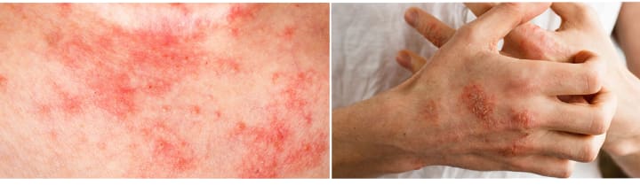 It’s characterized by patches of skin that can become red, itchy, dry, scaly and inflamed.
