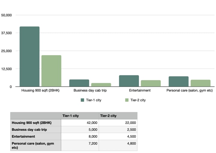 Here is a breakdown of the total monthly expense for big cities and towns.