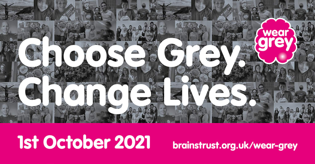 In October every year, Brainstrust holds it's annual “Wear Grey” initiative where people are encouraged to wear grey for a day to raise awareness of brain tumours and the difficulties that people suffering from brain tumours can experience. The initiative was first introduced back in 2012 and has evolved to become an annual event which takes place every October.