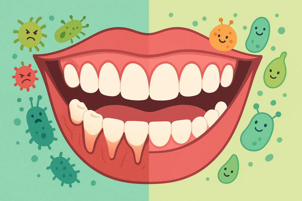 Just like your gut, your mouth has lots of different kinds of bacteria, some that are helpful and some that can cause problems. When the balance is disrupted (thanks to sugar, stress, antibiotics, or aging), the bad bacteria increase and cause gums to become inflamed and start to decay.