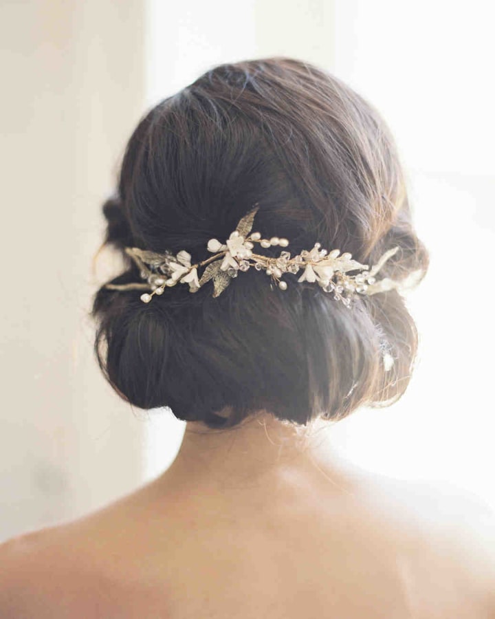 For brides who favor the more elegant, sleek, and pulled back bun, the new wedding hairstyle of 2018 is a variation of this bun that includes adding accessories to the top of the bun. Instead of a tiara or other jewelry, adding a jeweled clip or cover to the bun can give added elegance and sophistication. Consider attaching your veil to this piece of jewelry and having it drape below you, as opposed to at the top of your head. You can walk down the aisle with this wedding hairstyle feeling confident, stylish, and classy.