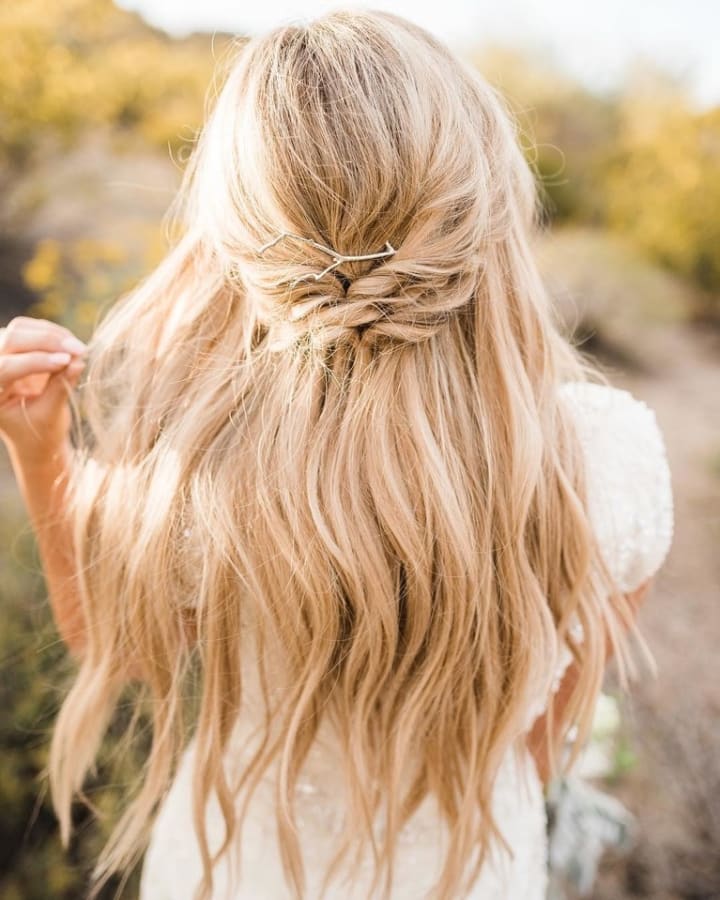 While you can spend hours stressing over the perfect wedding hairstyle, sometimes it is best to just go natural on your wedding day. After all, your groom fell in love with you for your natural beauty. Maybe this day is all about showing him exactly who you are. Let your hair down, grow your hair out healthy and long, and let it flow freely. Everyone will appreciate seeing your hair in its natural state. Wearing your natural hair for your wedding hairstyle could eliminate some stress, too, and the fact that you don't need a hairstylist makes it a perfect option for those planning a wedding on a budget. It never hurts to get one thing off your plate.