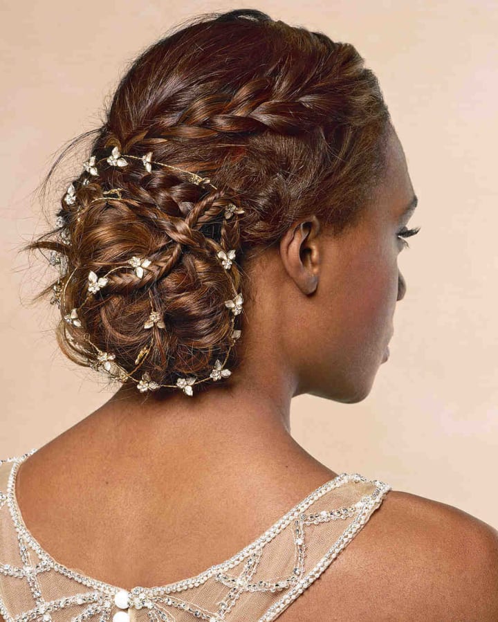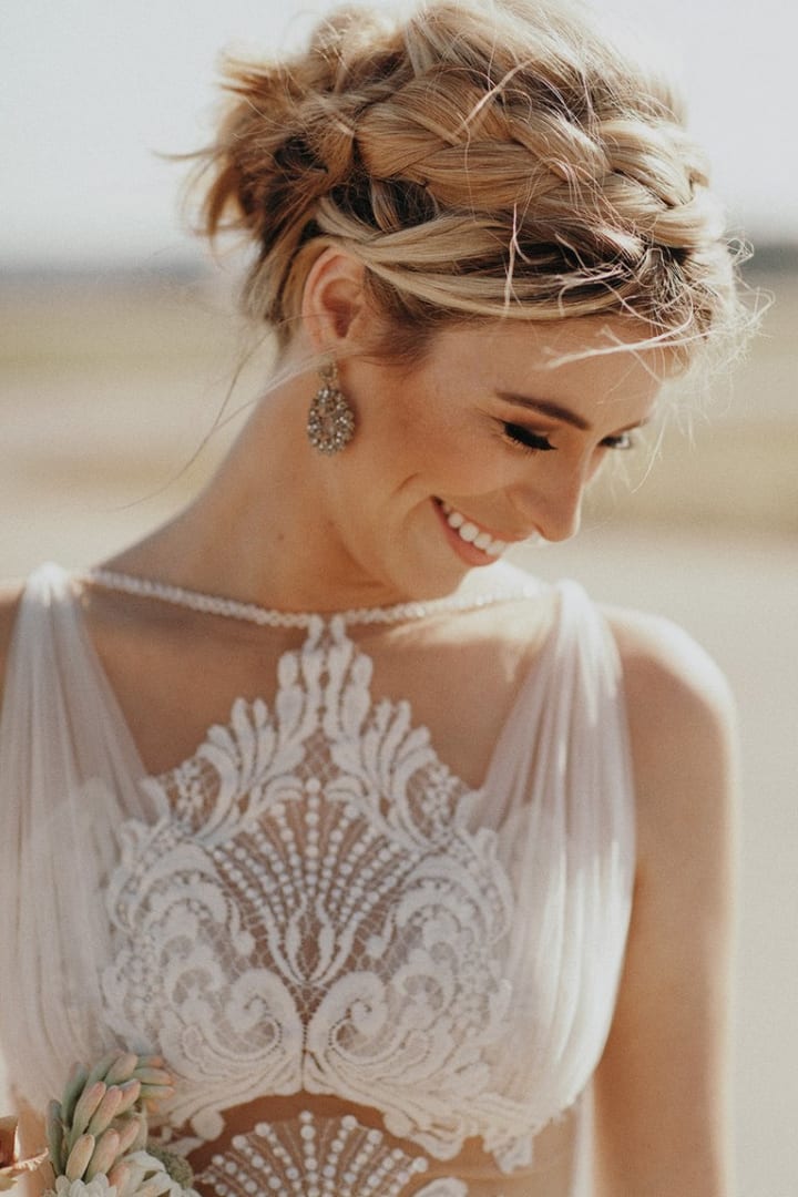 Choosing a half-up, half- down beautiful braided wedding hairstyle is a great combination option for brides who can’t decide between the classic updo or the more casual loose waves. A half-up, half-down look will allow you to wear a veil comfortably and keep the hair away from your eyes, while still giving you an elegant, flowy look from behind. You can add a tiara to this look, add interesting braids, or stick to something simpler depending on your dress and wedding style. Again, with this wedding hairstyle, there are many variations to make the look completely your own.