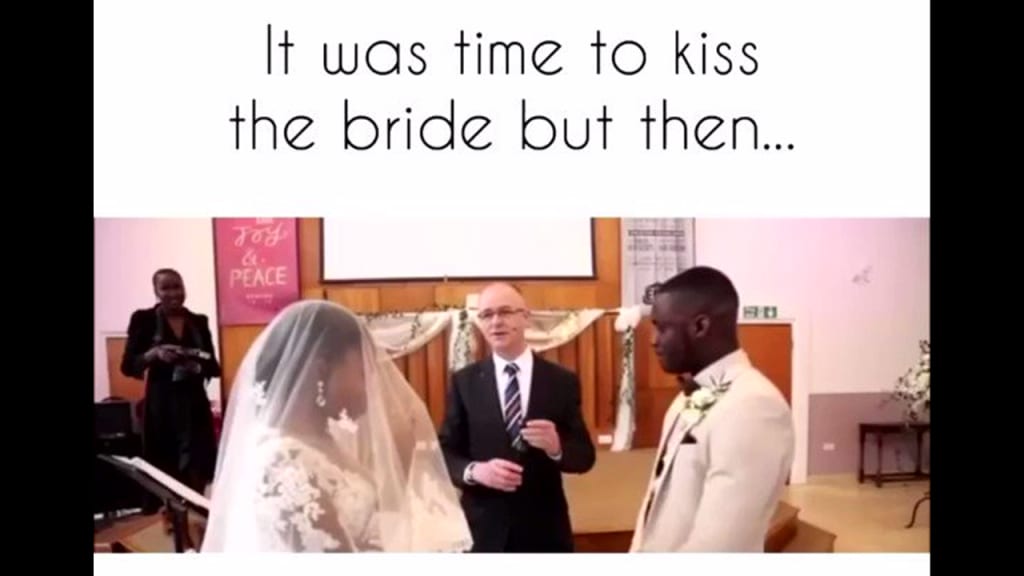 In the video, seemingly after the wedding vows had been shared, the pastor says: "You may now kiss the bride".