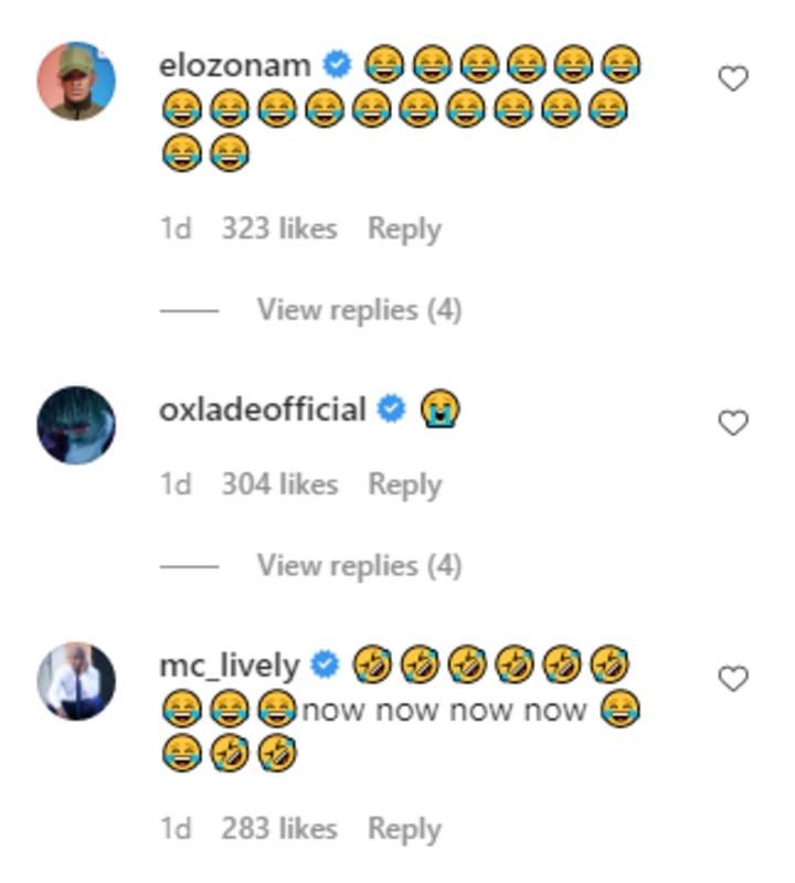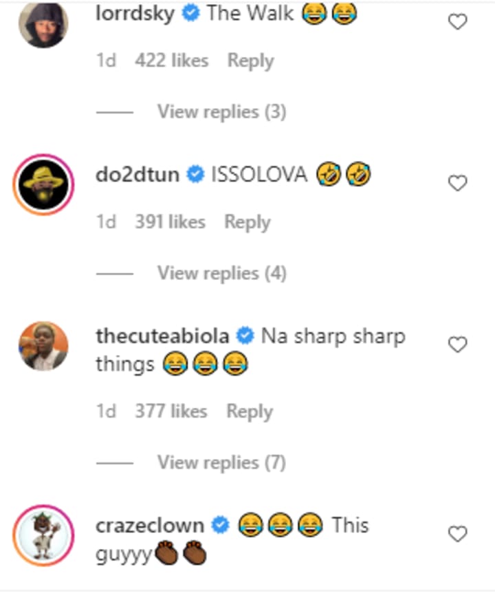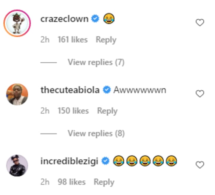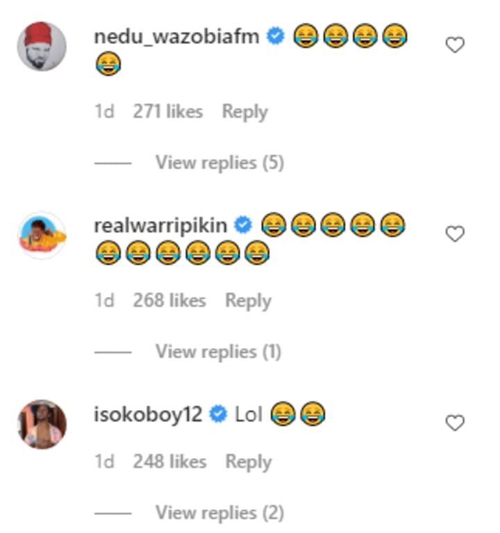 Everyone from singer Eva Alordiah to fellow comedians Broda Shaggi and Mr. Macaroni where in the comments section.