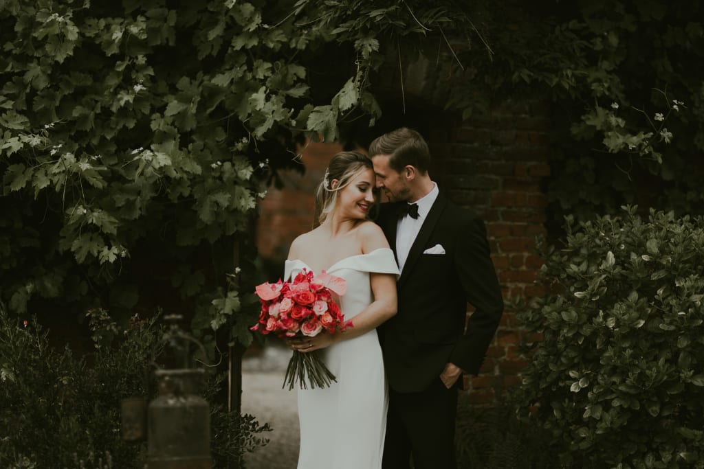 This is why we chose and coral for Stanlake Park. It's a warm tone, associated with the seaside, which in itself embodies summer. Emma Woodhouse roses and Ranunculus were chosen to maintain the summer seasonality of the July weather, while also bringing some romantic and whimsical lightness to an otherwise very dramatic look.