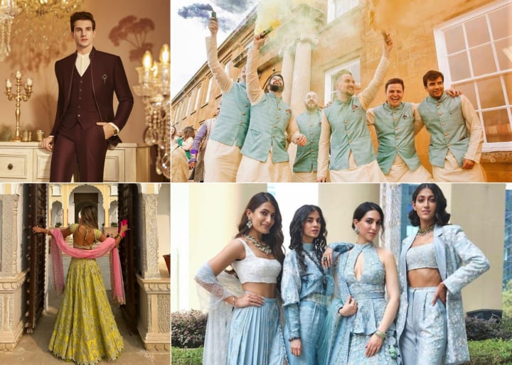 - Reception: Glamorous, Western-friendly, evening chic Sequin sarees, Indo-Western gowns, or tuxedos. Slightly bolder, fashion-forward looks are encouraged.