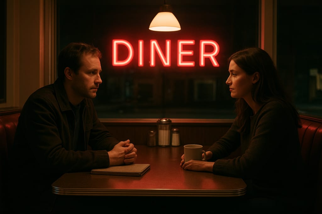 When they left the diner, the night air was cool, carrying the faint smell of rain. They stood under the streetlight, the glow casting long shadows.