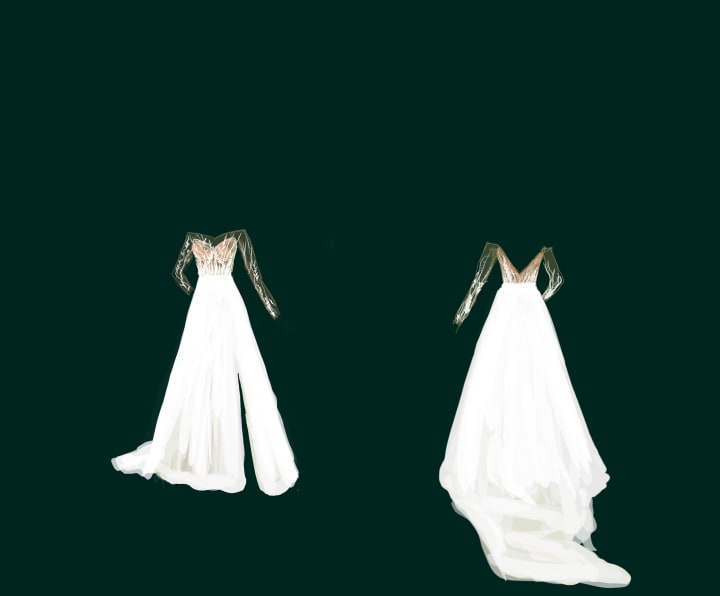 I’d already thought about making my own wedding dress, mainly because I wanted to cut the budget in as many places as possible for the wedding, but strayed away from the idea because my sewing experience was only four months old and consisted entirely of making facial masks. After his prompting, I shifted my perspective and began looking up dress patterns that I could jimmy together to make my dream dress, again with no avail. Shortly after my switching the game plan we were at church, worshiping, and I saw myself getting married with full detail of exactly what my wedding dress looked like. I drew it out and set that as my plan for what I was going to make my dress look like, again, having absolutely no experience in fashion design or construction.