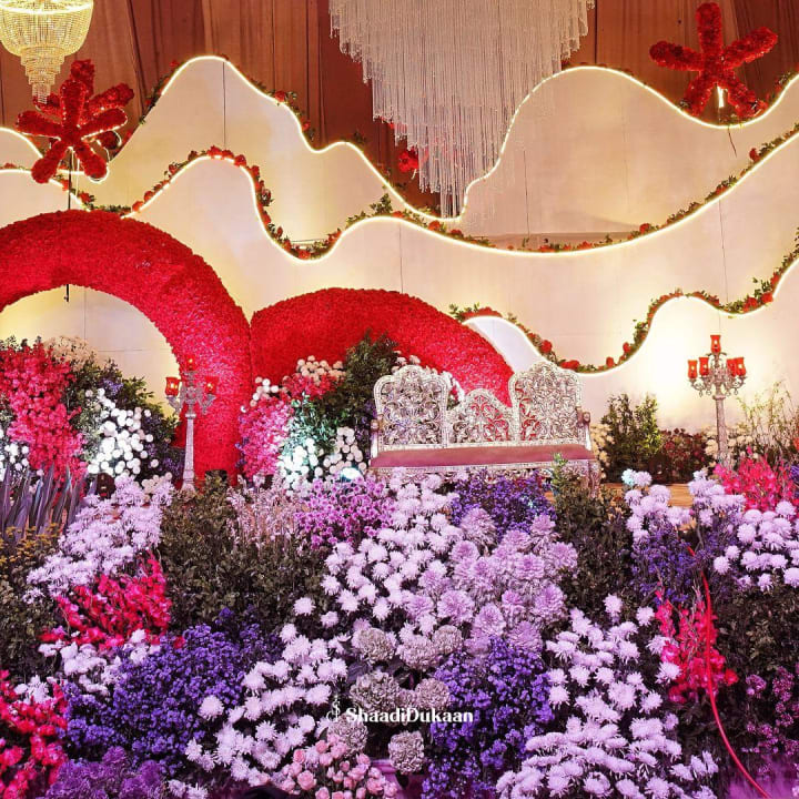 - Floral mandaps designed with precision and artistry