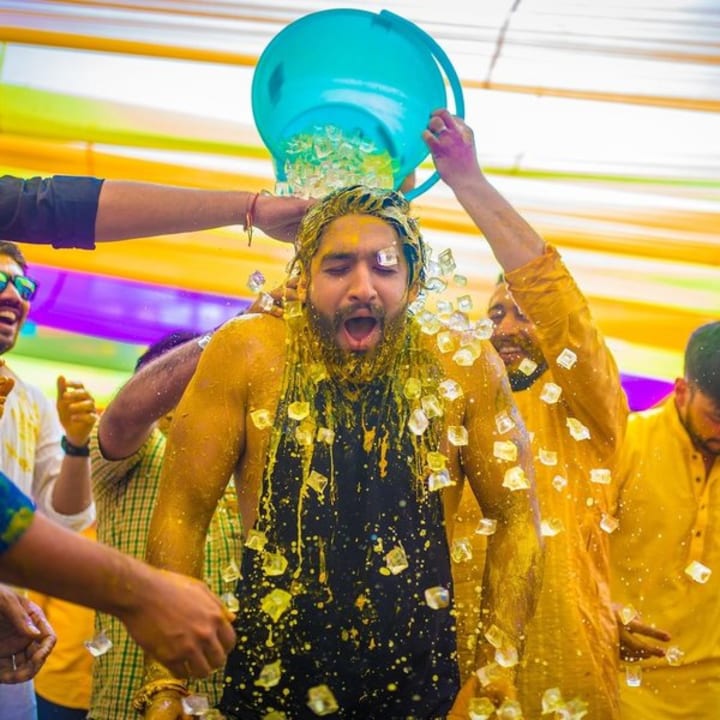 Turmeric Shower – Instead of applying Haldi traditionally, have his friends shower him with turmeric-infused water.
