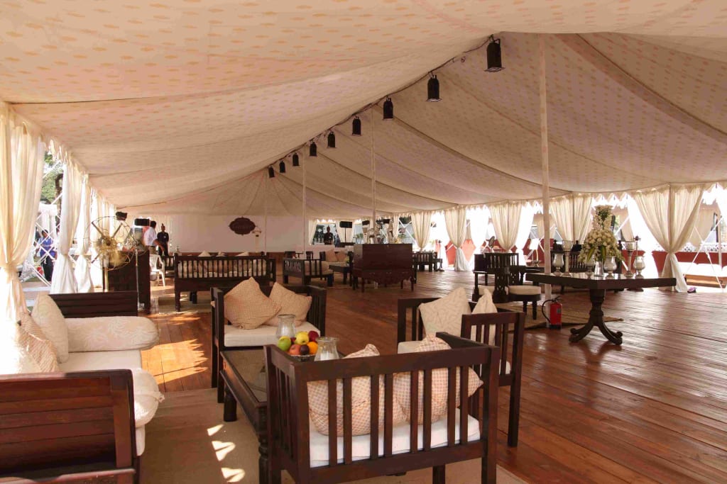 - Regal Marquee Tent: Rich maroons and golds with crystal chandeliers and traditional Indian seating.