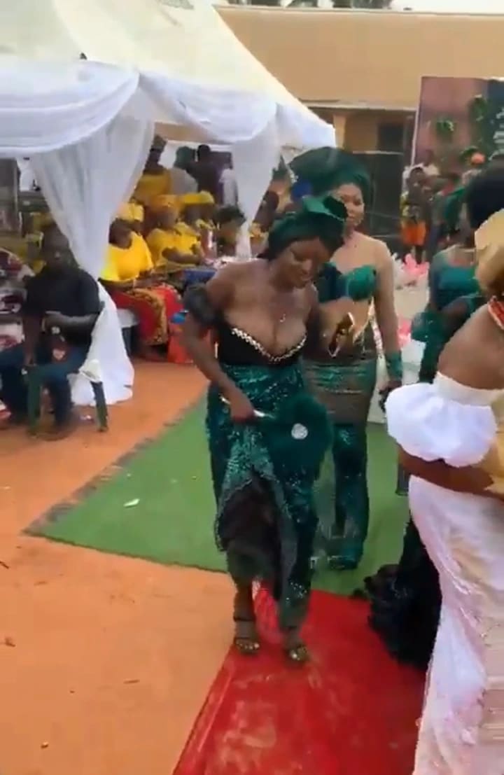 In the video, you really see the way the bridesmaid's chest is really bouncing and dancing to the beat of the music, so much so that when people come to begin spraying money, they don't even spray the bride, they go straight to start spraying the bridesmaid.