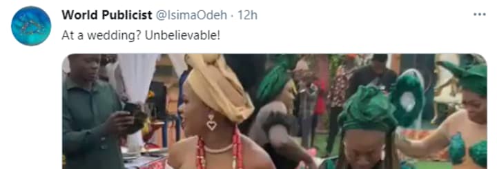 The internet is abuzz today because of a new video making the rounds on Twitter. In the video, a bride is dancing during her wedding but all eyes are not on her. Oh no, all eyes are on her friend in the bridesmaid train and the outfit the bridesmaid is wearing along with the reaction of the bride and what people think of all the whole situation has been very interesting to read.