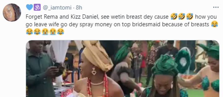 Forget Rema and Kizz Daniel, see wetin breast dey cause. How you go leave wife go dey spray money on top bridesmaid because of breasts