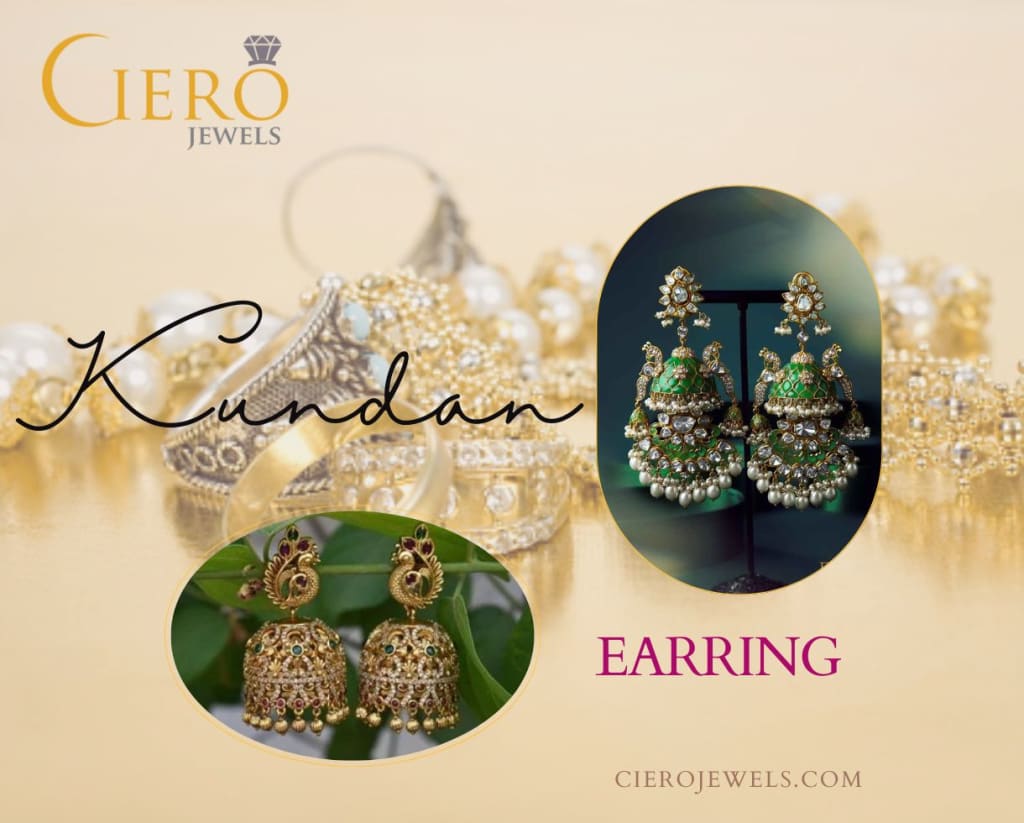 Kundan earrings jhumka are a popular choice among brides and women who want to add a touch of glamour to their outfits. They are made of gold or silver and feature colourful and sparkling kundan stones that are set in a chandelier-like design. These earrings are perfect for weddings, receptions, and other formal occasions.