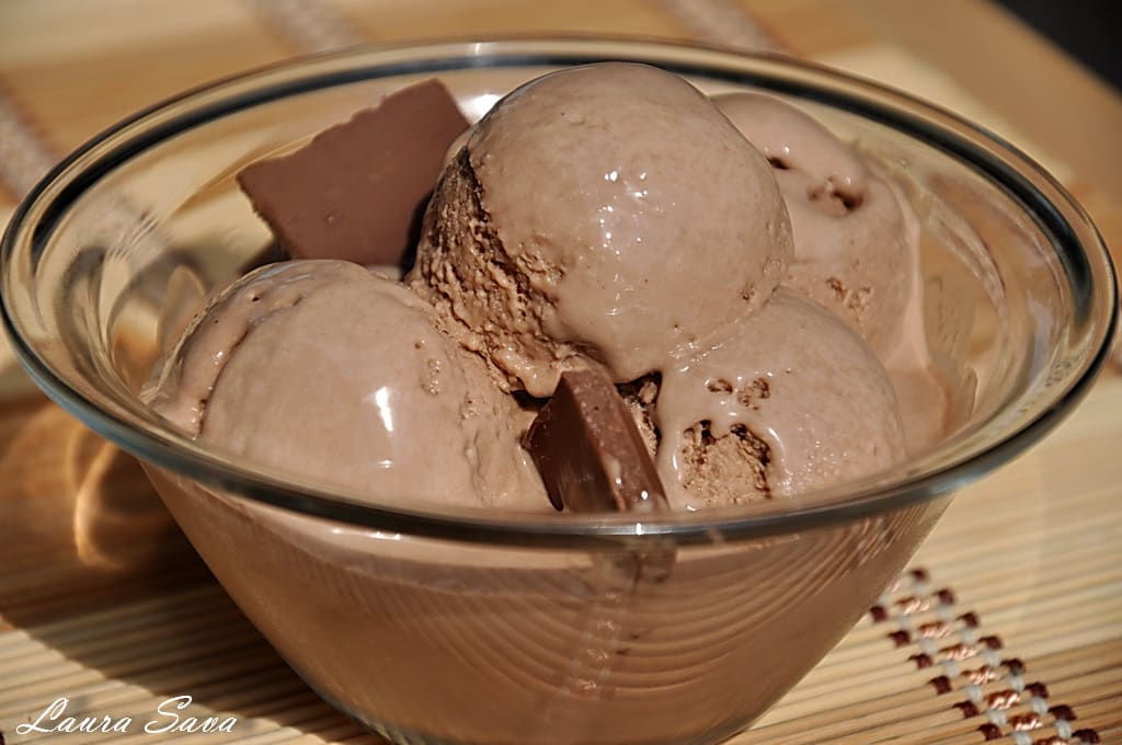 - After mixing it, we leave it in the freezer for about 15-20 minutes, then we serve it with chocolate sauce or with anything else you want. I made the mistake of pouring the warm sauce over the ice cream. If you use a homemade sauce for this ice cream, I recommend that you let it cool down very well first.