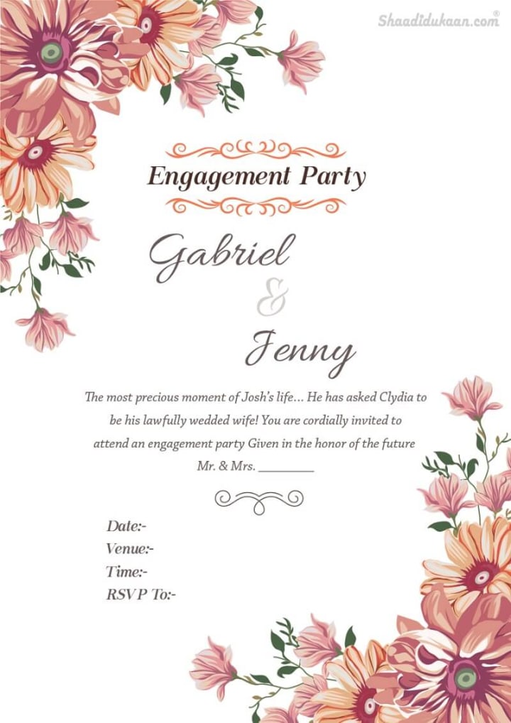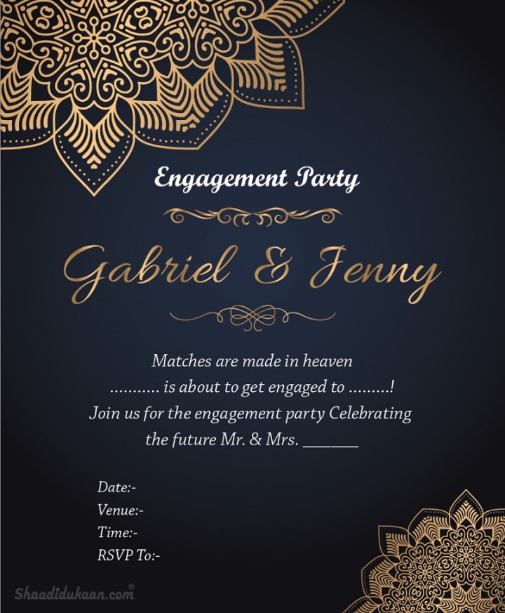 “Two hearts, one love, and a journey to forever. We, [Your Name] and [Partner’s Name], are thrilled to invite you to celebrate our engagement. Your presence will make our joy complete. Date: [Insert Date] | Time: [Insert Time] | Venue: [Insert Venue] | RSVP: [Contact Info]”