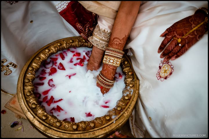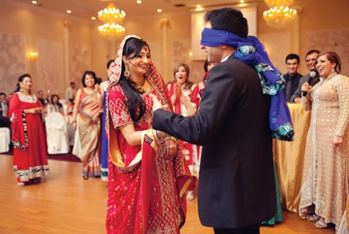 A post-wedding game that symbolizes love and compatibility, Find the Ring involves placing a ring in a large bowl filled with milk, water, or rose petals. The bride and groom compete to find the ring first. It is believed that whoever finds the ring will have the upper hand in the marriage. This game is simple yet highly entertaining, as family members cheer for their side.