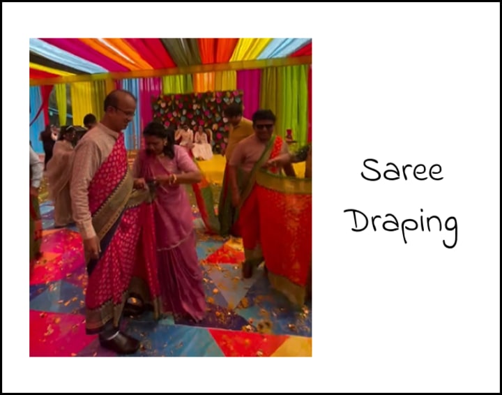 This game is especially fun for the male members of the family. Participants (usually men) are given a saree and must drape it in a limited time. The funniest draping wins! This game guarantees laughter and amusement as the men struggle to figure out how to tie a saree correctly.